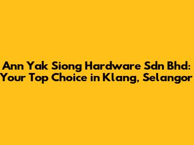 Hey guys! Looking for a reliable hardware store in Klang, Selangor? Let's dive deep into why Ann Yak Siong Hardware Sdn Bhd should be your go-to place. This isn't just another hardware store; it's a cornerstone of the community, providing quality products and services that keep Klang running smoothly. Whether you're a seasoned contractor, a DIY enthusiast, or just need to fix that leaky faucet, knowing where to get your supplies makes all the difference. So, stick around as we explore what makes Ann Yak Siong Hardware stand out from the crowd, making your life easier and your projects successful!